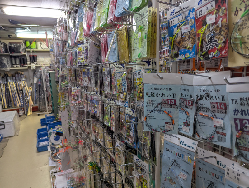 各魚種に対応した各メーカーの釣り道具や餌も豊富に取り揃えており、釣りにつかれる際は多くのお客様に立ち寄って頂いております。