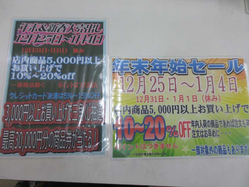 年末年始セール 2025年12月22日 コメントはまだありません 12月25日~1月4日までセール期間中です12月31日1月1日はお休み期間中お買い得なのでぜひご来店お待ちしております3,000円以上お買い上げで三角くじ抽選もあります